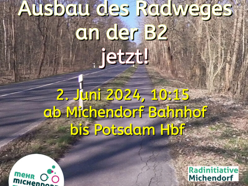 Am 18. Juni 2025 wurden die Ergebnisse des ADFC-Fahrradklimatests von 2024 veröffentlicht (Fahrradklima-test ADFC). Aus Michendorf haben 83 Personen teilgenommen. Mit 3,9 (was einer Schulnote von vier entspricht) blieb das Fahrradklima in Michendorf dabei im Vergleich zu 2022 unverändert. Es gab zwar in der Zwischenzeit einige Verbesserungsmaßnahmen, wie beispielsweise Radabstellanlagen an Bahnhöfen und Bushaltestellen. Diese reichen aber gerade aus, um bei weiterhin zunehmendem Radverkehr das niedrige Niveau des Fahrradklimas zu halten.
