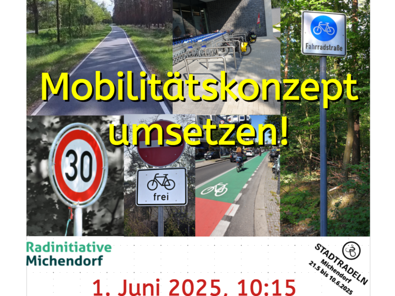 Die Radinitiative Michendorf hat einen Lokal-Agenda-Preis PM erhalten, verliehen durch den Beigeordneten des Landkreises Potsdam-Mittelmark Herr Dr. Löwe. Weitere Preisträger sind Bäume für die Zukunft e. V. und der Kreuzpunkt Michendorf e. V. mit dem Projekt „Mülldetektive“.